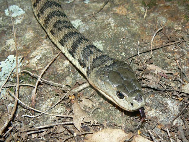 Commonly encountered at Mt Nebo, Mt Glorious and the western facing slopes of the D'Aguilar range. In 1999 a specimen from Rochedale was presented by a snake relocator where historical records are known. Periphery suburbs such as Upper Brookfield have also seen recent records.